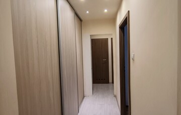 - A közlekedő helyiségben beépített, tolóajtós gardróbszekrény található.