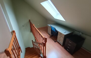 - A felső szinten a hálószobák burkolata laminált parketta, a többi helyiség járólappal burkolt.