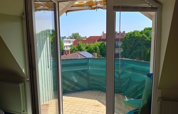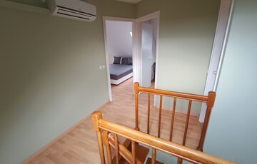 - Alsó szint helyiségei: előszoba, konyha, nagyméretű étkező + bár, nappali, kétmosdós nagy fürdőszoba, WC külön, erkély.
