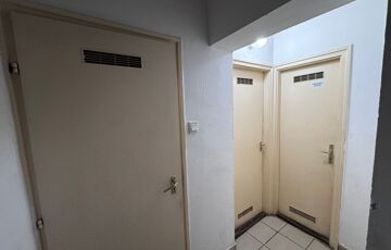 A kiadó helyiség személyzeti lejáróval és lépcsős megközelítéssel rendelkezik, így a működés praktikus és jól szervezhető.