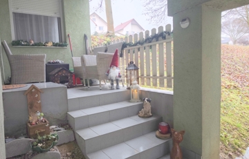 Saját teraszról megközelíthető, igényesen felújított, bútorozott és gépesített 73 m2 - es földszinti lakás csendes, zöld környezetben!