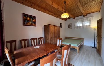 A beépíthető tetőtér és a külön apartman kiváló terepet kínál többgenerációs használatra, vendéglátásra vagy boutique-jellegű bérbeadásra.