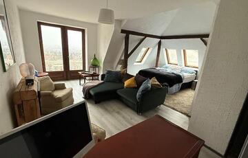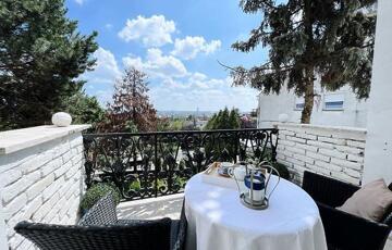 A beépített padlástér tovább növeli az ingatlan értékét: két szoba, két fürdőszoba, egy háztartási helyiség és egy 6 nm-es panorámás erkély került kialakításra, ahonnan a környező zöldövezet látványa minden napszakban különleges élményt nyújt.