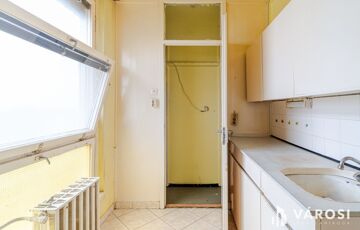 Az ingatlan felújítást igényel: a konyha, fürdőszoba és a villamoshálózat eredeti állapotú. A szobák laminált padlóval, míg a többi helyiség hidegburkolattal rendelkezik. A nyílászárók eredeti fa szerkezetűek, redőnnyel felszereltek, a közlekedőben klímaberendezés található.