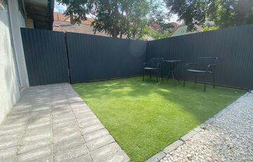 Az ingatlan előtt kb. 20 nm-es privát, lekerített kertkapcsolat helyezkedik el.