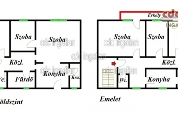 A két szint külön bejáratú, valamint külön villany- és gázórával rendelkezik.