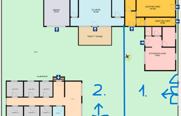 - Klub épület (8 szobás): 160 m2