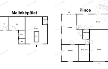 Egész épület alatt szuterén, garázzsal, konyhával, tárolókkal