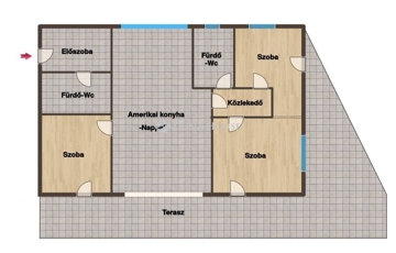89 m2 alapterületű lakás, amerikai konyha-nappali+ 3 hálószoba+ 2 fürdőszoba elosztással