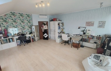 A földszinten egy tágas amerikai konyha és a hozzá kapcsolódó nappali alkotja az otthon központi terét. A nagyvonalú nappali mérete lehetővé teszi, hogy egyszerre legyen élettér, találkozási pont és pihenőhely. kandalló, hűtőfűtő klíma teszi komfortossá a teret.