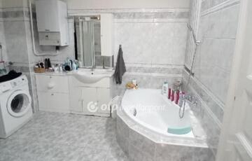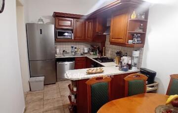 A lakásban három nagy szobából kettő az ucára, egy az udvarra néz. A fürdőszobája is méretes, kád és tusoló is található benne. A WC külön bejáratú. Jól felszerelt konyhája egyben van az étkezővel. A konyhából egy nagy kamra nyílik, amiből még egy kis spejzba jutunk. A fűtést gáz-cirkó kazán biztosítja. Négyméteres belmagassága miatt kiválóan galériázható.