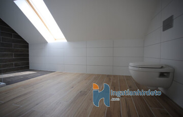 Az emeleten/tetőtérben szintén egy tágas előtér fogad minket elsőre,továbbá találunk még egy fürdőszobát,2 szobát. Valamint egy nyugati fekvésű,fából készült,fedett 3 négyzetméteres teraszt.