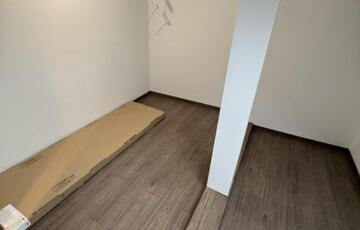 Az alsó szint elrendezése: amerikai konyha, nappali, szoba, előszoba, fürdőszoba és WC 51 nm alapterülettel, tartozik hozzá egy 7,5 nm alapterületű fedett erkély.