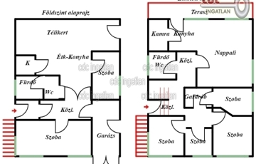 Akár több generáció összeköltözésére is alkalmas lehet, de befektetésnek is kiváló a két külön kialakított lakrész miatt. Elhelyezkedését nézve pedig vállalkozásnak is tökéletes helyszínt nyújthat. Az ingatlan 824 m2-en helyezkedik el, ennek több mint a fele a szabad zöld terület. A 215 m2 alapterületű, kétszintes családi ház szintenként ketté van választva, két külön bejáratú, 107 m2 lakásra, de igény esetén egybe is nyitható. Mindkét lakás külön gáz és villanyórával rendelkezik, így a költségek könnyedén szétválaszthatóak. Az ingatlan magába foglal összesen 5 hálószobát, 1-1 nappalit és konyhát és mindkét lakásban 1-1 fürdőszobát, külön álló mosdókkal. Két autó beállására alkalmas garázs is található benne. A földszinti lakrészben jelenleg két külön nyíló szoba, konyha, étkező, zuhanyzós fürdőszoba, különálló mellékhelyiség, kamra és egy hangulatos télikert találhatóak. A fűtésről és melegvízről kombicirkó gondoskodik. Az emeleti lakrész külső lépcsőn közelíthető meg. Jelenleg négy szoba, nappali, konyha, zuhanyzós fürdőszoba, külön mellékhelyiség, közlekedő és egy nagyobb méretű lépcsőház galériával kínál kényelmet az itt lakóknak. A konyhából nyílik egy nagyobb méretű emeleti terasz. A fűtésről gázkazán, a melegvízről gázbojler gondoskodik. A 824 m2-es telken egy kinti elkerített terasz is kiépítésre került, mely alatt pince is található, mely kiváló lehetőséget biztosít tárolásra. Az épület teljes mértékben használható állapotú, igény szerint esztétikai felújítást igényel. Nagyon jó infrastruktúrával ellátott környék, buszmegálló 3-5 perc sétára található, közelben Spar, orvosi rendelő, gyógyszertár, több bank, bölcsőde, óvoda, iskola.