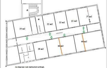 Az emeleten egészen ~22 m2-től ~60 m2-ig vannak még eladó irodák, üzlethelyiségek. Egyes irodákban vízvételi lehetőség is biztosított.
