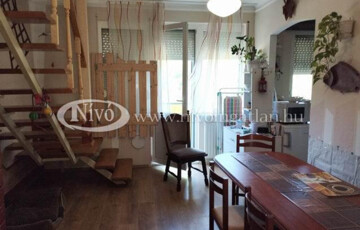 Az épület tégla építésű, két szintes plusz tetőtér beépítéses kialakítású. A lakás a második emeleten helyezkedik el plusz a tetőtér beépített, amit belső és külső lépcsőházi megközelítéssel is kialakított. Így igény esetén a két szint leválasztható, kisebb átalakítással a tetőtérben egy önálló garzon lakás is kialakítható, ezáltal befektetésnek is kiválóan alkalmas illetve külön is hasznosítható.