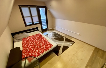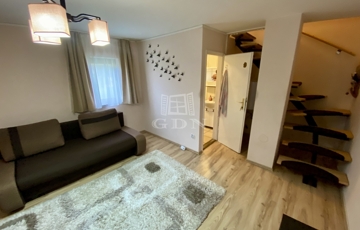 A 309 m²-es telken elhelyezkedő épület összesen mintegy 68 m² hasznos alapterülettel rendelkezik. Az alagsori szint 30 m²-es, ahol a konyha, egy szoba és egy kis helység került kialakításra. Itt található egy meghitt hangulatú cserépkályha és emelett elektromos fűtőtestek biztosítják a komfortot. A földszinten egy 24 m²-es lakótér található egy nappalival és egy fürdőszobával, amelyhez egy 10 m²-es terasz kapcsolódik; ezen a szinten gázkonvektor és elektromos fűtés gondoskodik a kellemes hőmérsékletről. A tetőtérben egy 10 m²-es szoba kapott helyet, valamint egy 4 m²-es terasz, ahonnan lenyűgöző panorámás kilátás nyílik a Duna holtágára és a környező természeti környezetre.