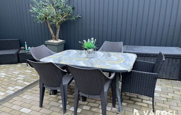- **Telekméret:** 300 m² parkosított, gondozott udvar