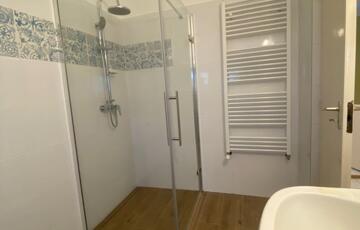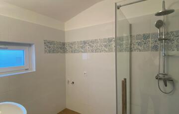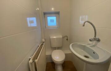 Fürdője zuhanyzós, ablakos és külön WC van, kézmosóval.