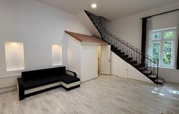 A felújítás során a nagy belmagasságnak köszönhetően állógaléria lett kialakítva, amely kiválóan növeli a hasznos életteret, és modern, mégis otthonos hangulatot teremt. Az ablakok egy szépen gondozott, zöld belső kertre néznek, így a belvárosi elhelyezkedés ellenére csend és nyugalom várja az új tulajdonost.