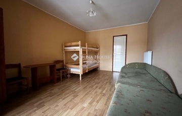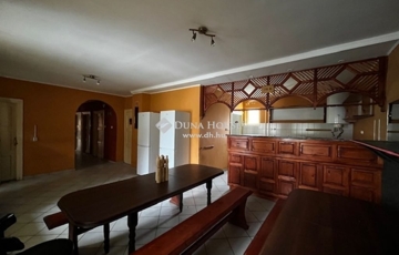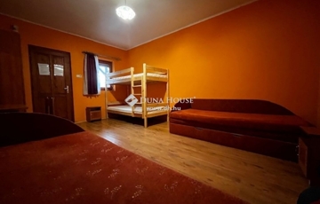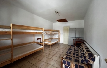 Az alsó szinten levő hatalmas rendezvényterme, vizes blokkjai, konyha étkezője, irodahelisége felett az emeleten 8 külön bejáratú apartman található.
