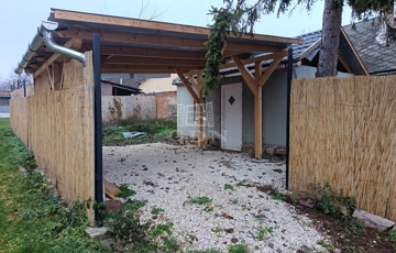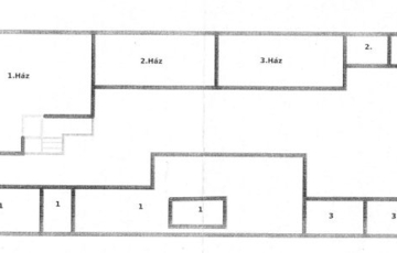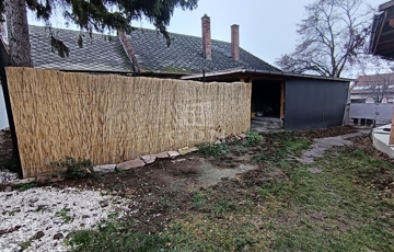Az udvar osztott, közös tulajdon, vázrajzon feltüntetve, a hazsnálati megosztás. Ez a ház az udvarban az első, utcafronti épület, melyhez 1 db 40 nm nagyságú, fedett garázs is tartoziuk, ezen kívül egy pince is.