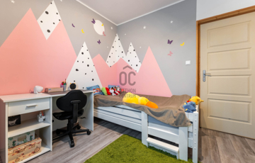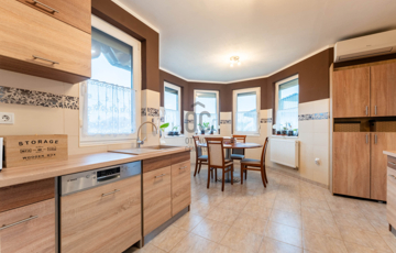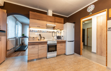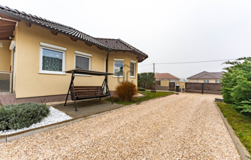-helyiségek: 3 hálószoba, nappali, tágas konyha–étkező, WC-kézmosó, fürdőszoba,
