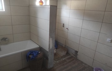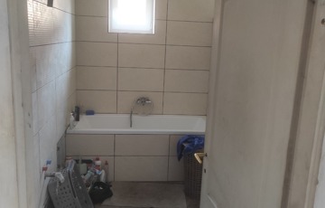 A tágas fürdőszoba teljes felújítása során, egy épített zuhanyzó és kád került kialakításra. A víz és villanyvezeték teljes cseréje a tavalyi évben megtörtént.