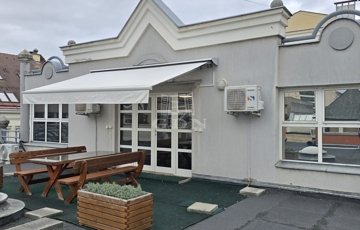 -200 m²-es, emeleti üzlethelyiség, hatalmas üvegportállal, tetőterasz használattal!