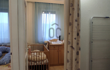 Békásmegyer Hegy-felöldi oldalán, a lakótelep szélén eladóvá vált egy jó adottságokkal rendelkező 3-szobás lakás. A LAKÁS az 5. emeleten van, - és mivel a lakótelep szélső épülete, É-felé szép kilátása van a budakalászi dombok felé. A D-i oldalon is parkra néz az ablak. É-D-i tájolásának köszönhetően kellemesen világos, D-i oldalról árad be a napfény. (Nem mellesleg jól átszellőztethető) ELRENDEZÉSE nagyon praktikus: ha belépünk egy tágas étkezőbe érkezünk, ahonnan valamennyi további helyiség nyílik. Kifejezetten nagy méretű nappalija kényelmesen berendezhető. A másik oldalon elhelyezett 2 hálószoba a fürdővel és a külön wc-vel jól elkülönül a nappali tartózkodási tértől, így a korábban pihenni vágyókat nem zavarja az esetleges hangos beszélgetés, TV-nézés... Konyhája világos, praktikus elrendezésű, sok pakolóhellyel. A lakásban sok praktikus beépített szekrény van, ami szintén része a vételárnak. MŰSZAKI ÁLLAPOTÁT tekintve az elmúlt 25 évben több felújítás is történt. Az elektromos vezetékek cserélve lettek, a konyha és fürdőszoba mintegy 8 éve lett újragondolva, burkolatok is akkor lettek cserélve. A műanyag nyílászárók redőnnyel és szúnyoghálóval vannak ellátva. FŰTÉSről távhő gondolskodik egyedi méréssel. De mivel nagyon meleg a lakás, jellemzően csupán a hideg téli hetekben kell bekapcsolni a radiátorokat. Ennek köszönhetően igen kellemes rezsi költségekkel lehet számolni. A hűtésről klímakészülék gondoskodik. LOKÁCIÓJA tökéletes. A lakótelepen 3-5 perc sétatávolságon belül van orvos, patika, bölcsi, ovi, suli, bevásárlási lehetőség. A 160-as busz szinte a ház előtt áll meg, a HÉV-megálló pedig 10 percen belüli sétatávolságban van. A lakás a START PLUSZ hitel felvételére is alkalmas, ideális választás fiatal párnak kisgyerekkel.