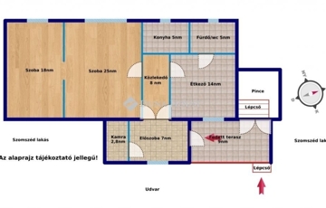 Ez a világos, tágas, 2 szobás lakás külön étkezővel is rendelkezik így praktikus a belső tér minden tekintetben.A szobákat és a közlekedőt parkettákkal látták el, míg a konyha, fürdő/WC, kamra, előtér és a fedett, nyitott terasz praktikusan hidegburkolatot kapott.