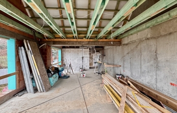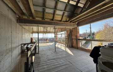 - Emeleti szint: impozáns, egy légterű nappali + étkező + konyha + kamra blokk, külön WC és előszoba