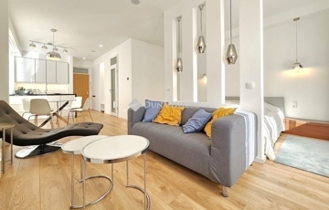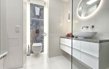 A felújítás során a lakást teljesen szétbontották: új alaprajz, új gépészet, új elektromos hálózat, új burkolatok és prémium nyílászárók kerültek beépítésre. Az eredmény egy modern, egylégterű, letisztult otthon, ahol minden részlet átgondolt.