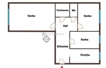 Az ingatlanban egy tágas nappaliszoba, két hálószoba, egy ablakos konyha, egy fürdőszoba, és egy külön wc helyiségek kaptak helyet, melyek mindegyike külön bejáratú, az előszobából, és az ahhoz csatlakozó hallból nyílik.