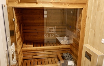 Az inagtalan két fürdőszobával rendelkezik: a fő hálószobához kapcsolódó kádas fürdőben egy szauna is helyet kapott. A másik fürdőszoba zuhanyzós, mindkettő fürdőszobában WC is van. A déli tájolásnak köszönhetően a lakás rendkívül világos.