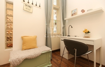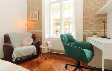 Az ingatlan Terézváros központi részén található. A lakás egyediségét a tradicionális polgári hangulat a finom belsőépítészeti megoldások és az egyedi lakberendezői munka teszi izgalmassá.
