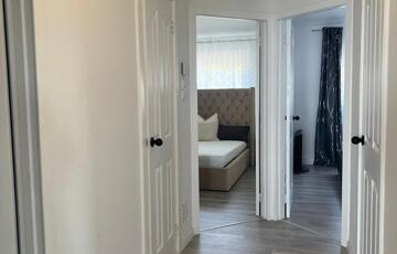 A 2 hálószoba külön bejáratú, a nappaliban beépített szekrények biztosítanak helyet a tárolásra, valamint gardrób szoba is rendelkezésre áll.