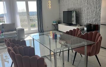 A konyha elektromos tűzhellyel, mosogatógéppel, hűtővel felszerelt.