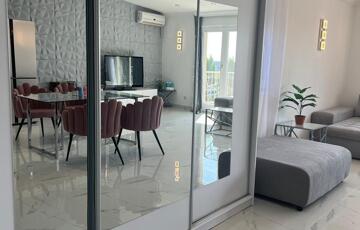 The large windows of the American kitchen-dining room and living room let in sunlight, and from the balcony you can enjoy a beautiful panorama of the Buda hills and the garden with a pool. The windows are equipped with shutters. The apartment was completely renovated in 2006.