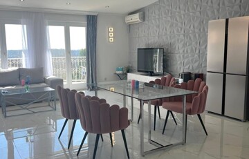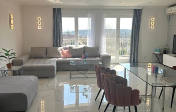 Az amerikai konyhás étkező-nappali hatalmas ablakain árad be a napfény, az erkélyről gyönyörű panorámát élvezhetünk a budai hegyek felé, valamint a medencés kertre. Az ablakok redőnyökkel felszereltek. A lakást 2006-ban teljeskörűen felújították.