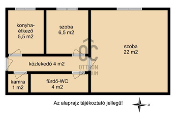 1 +1 félszoba, konyha-étkező, közlekedő, kamra, fürdőszoba+WC helyiségekből áll