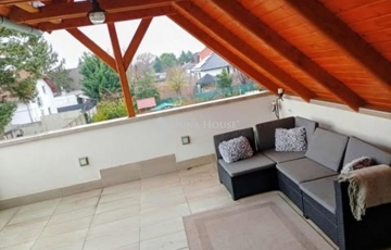 Az emeleti terasz körülbelül 6 évvel ezelőtt egy fél tetőt kapott, ami még vonzóbbá teszi az ingatlant a külső tér használat szempontjából minden évszakban.