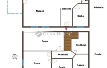 -Földszint:tágas, világos amerikai konyhás nappali étkezővel, amely közvetlenül kapcsolódik a fedett teraszhoz, praktikus tároló a lépcső alatt, fürdőszoba, külön mellékhelyiség, 1 szoba, amely alkalmas lehet dolgozónak, vendégszobának vagy akár hálónak