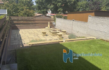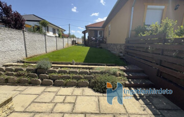 A 16 m²-es garázs közvetlen kapcsolatban áll a lakótérrel, ami a mindennapokban kifejezetten kényelmes. Az udvar rendezett, automata öntözőrendszerrel kialakított, a kertben elkülönített főző- és bográcsozó hely található. Az előkert parkosított, a kerítés jó állapotú.