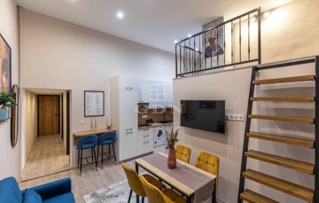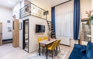 Budapest VIII. kerületében, a Német utcában, hangulatos társasház földszintjén kínálunk eladásra két külön bejáratú, belső kétszintes, teljeskörűen felújított, bútorozott és gépesített lakást.