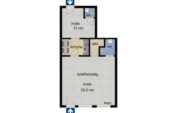 - Üzlethelyiség, iroda helyiség, raktár,2 szeparált WC.
