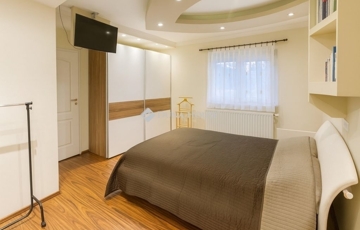 - Emelet: 3 hálószoba, luxus fürdő Wellis jacuzzis káddal, infraszauna- Kültér: három terasz, köztük egy fedett, motoros napellenzővel