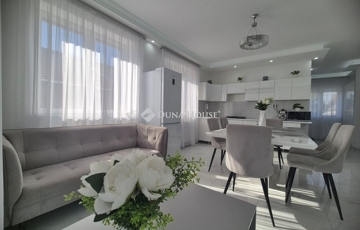 A lakótér a magas földszinten helyezkedik el, ahol egy amerikai konyhás nappali + 1 egész szoba +2 félszoba, fürdőszoba, előszoba biztosít tágas, kényelmes életteret. Az említett lakótérhez tartozik egy 9 m2-es erkély is, amely tökéletes helyszínt nyújt a pihentető kávézásokhoz vagy csak a nyugalom élvezetéhez.
