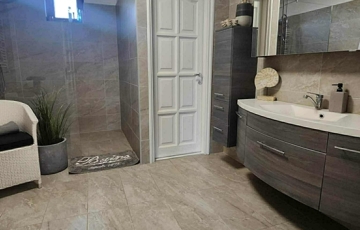 Az alsó szinten egy különálló lakás került kialakításra, saját konyhával, amely ideális lehet többgenerációs együttéléshez, vendégek fogadására vagy akár kiadásra is.