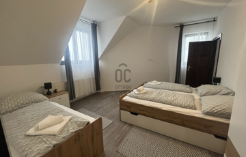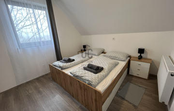 Emelet: felújított, vendéglátásra alkalmas helyiségek, Nappali + 4 hálószoba, 2 fürdőszoba, amelyek tovább bővítik a hasznosítás lehetőségeit.